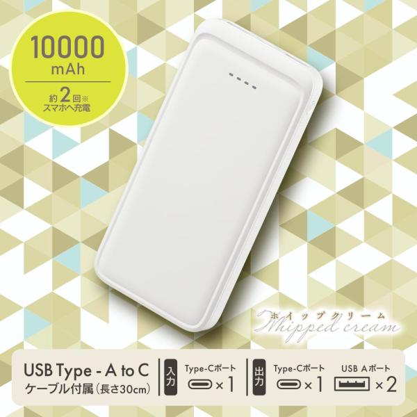 モバイルバッテリー(10000mAh/スマホ充電2回/3台同時充電可/USB AtoCケーブル付/ホイップクリーム)_05-0804_SMP-MB100-W_OHM(オーム電機)