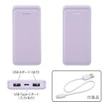 モバイルバッテリー(10000mAh/スマホ充電2回/3台同時充電可/USB AtoCケーブル付/ラベンダーミスト)_05-0805_SMP-MB100-PU_OHM(オーム電機)