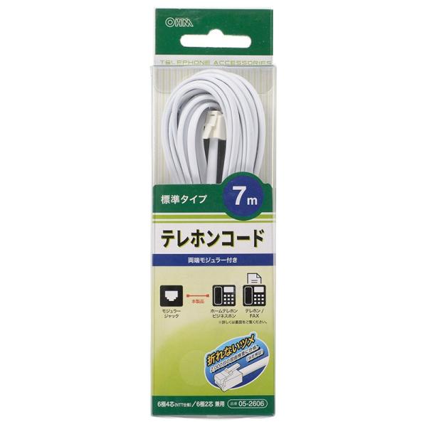 【法人様限定】オーム電機 TEL-C2606W テレホンコード 標準タイプ ホワイト 7m [品番]05-2606