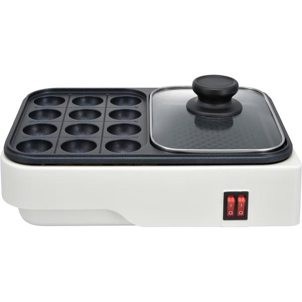 OHM オーム電機 2WAYたこ焼きプレート(ガラスふた付/1000W/コード長1.4m/ホワイト) COK-YH100F-W