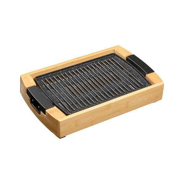 - 【特長】◆1人でも2人でも焼肉を楽しめるコンパクトサイズ◆本体は天然の竹素材でおしゃれ◆ヒーターとプレートが一体式で煙や匂いが少ない◆余分な油が落ちやすい特殊構造◆こびり付きにくいフッ素加工◆ダイヤル式温度調整◆LOW(約120°C~約130°C)、MID(約170°C~約180°C)、HIGH(約220°C~約230°C)で温度調節が可能◆保温機能付き 【仕様】◆定格電圧:AC100V50/60Hz◆定格消費電力:1000W◆温度調節方式:サーモスタット...80°C(保温)~230°C◆本体寸法:(約)幅391x高さ75x奥行243mm(コントローラー含まず)◆質量:約2.2kg(コントローラー含まず)◆コード長:約1.4m(コントローラー含まず) ◆材質:本体...竹材、プレート...アルミダイカスト、取っ手...フェノール樹脂、水トレイ...アルミ、コントローラー...フェノール樹脂◆付属品