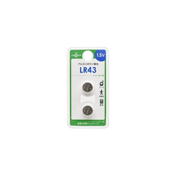 【メール便選択可】オーム電機 LR43B2P アルカリボタン電池 LR43 2個入 084136
