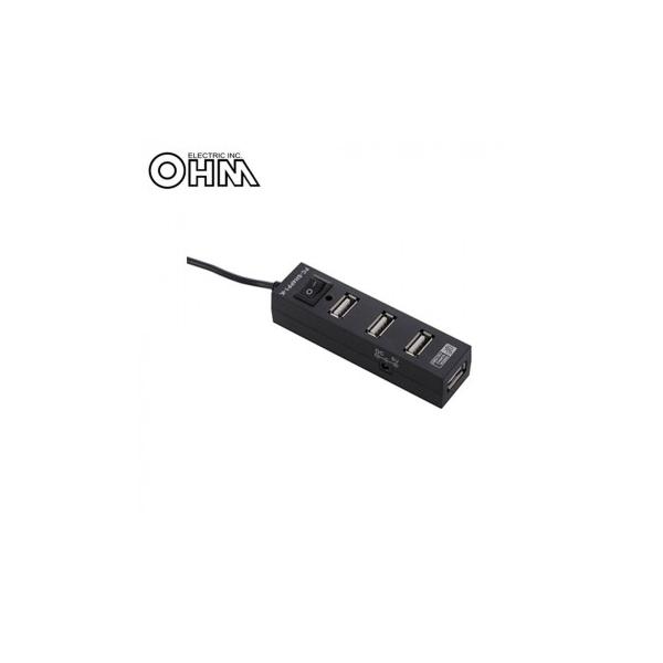 OHM スイッチ付き4ポートUSBハブ 黒 PC-SH4PP1-K