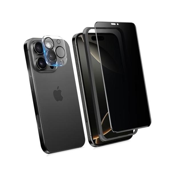・対応機種iPhone 16 Pro専用(三眼カメラ、6.3インチ)。パッケージ内容: iphone16pro 覗き見防止フィルム * 1枚 + iphone16pro カメラフィルム * 1枚 + ガイド枠 * 1枚 + クリーニングセット*1 + 取扱説明書 。対応機種を間違いないようにご購入お願い申し上げます。