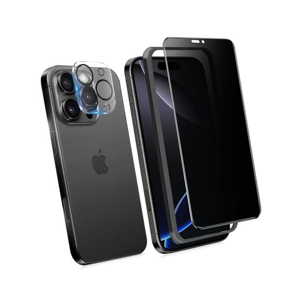 ・対応機種iPhone 16 Pro Max専用(三眼カメラ、6.9インチ)。パッケージ内容: iphone16promax 覗き見防止フィルム * 1枚 + iphone16promax カメラフィルム * 1枚 + ガイド枠 * 1枚 + クリーニングセット*1 + 取扱説明書 。対応機種を間違いないようにご購入お願い申し上げます。