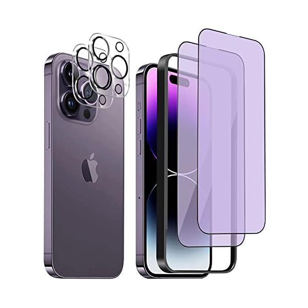 DZHFU iPhone 14 Pro max強化ガラスフィルム4枚入り ブルーライトカット 6.7インチ 硬度9H 滑らかなタッチ操作 指紋付