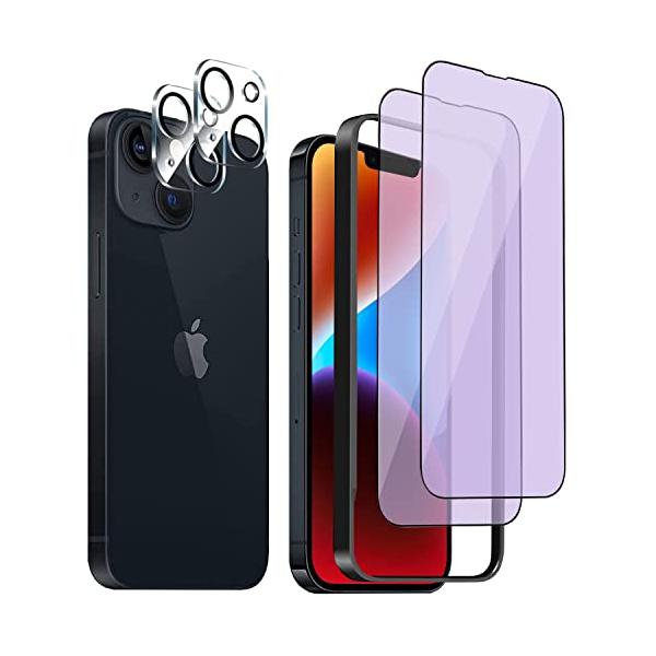 DZHFU ブルーライトカット iPhone 14 plus 用 強化ガラスフィルム 6.7インチ 硬度9H強化ガラス 滑らかなタッチ操作 指紋