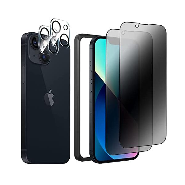 - ★【対応機種】iPhone 13(アイフォン 13)用。同梱物:28°覗き見防止強化ガラスフィルム2枚、レンズ保護フィルム 2枚、ウェット/ドライペーパータオル、除塵ステッカー、不織布、ガイド枠、取扱説明書。★【高品質素材製、硬度9H】一般的なガラス保護フィルムよりも耐久性に優れたハードコーティング技術により、9Hの硬度を実現。特殊な飛散防止処理により、ガラスが割れても飛散せず、破片が付着したときに携帯電話の画面を傷から安全に保護できる。DZHFUのいphone液晶保護フィルム 一般的な製品に比べ3倍以上の保護力があり。★【ほどよいサイズデザイン】縁はエッジの無い滑らか加工が施されています、iPhone本体の縁まで適度なスペースを残すデザインとなっており、フィルムの剥がれや浮き上がりを防止し、スマホケースと干渉せずに快適に使えます。★【覗き見防止・指紋防止】特殊なブラインド加工により、正面から見えなくても傾斜面が見えにくいので、覗き見を防止する。電車や人が混雑する公共場所でiPhoneを楽しむことができる。 iPhoneを視線角度から28度傾けても画面が見えないため、プライバシーを保護できる。プラズマ疎油性コーティング処理、滑らかな手触り、指紋による汗や油分の残留を防ぎ。★【初心者でも簡単に貼り付け可能】ほこりを取り除き、ガイド枠を利用することで、位置合わせてから貼り付ける必要 ガラスフィルムを画面に置くと自動的に吸着でき、指で真ん中から端に向かって軽く押すだけで、気泡もなく綺麗に仕上げることができます。DZHFUは高品質の製品を提供する。