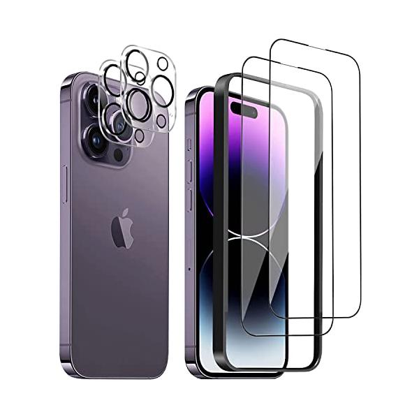 DZHFU iPhone 14 Pro max 強化ガラスフィルム4枚入り 高精細 6.7インチ 硬度9H 滑らかなタッチ操作 指紋付着防止 自