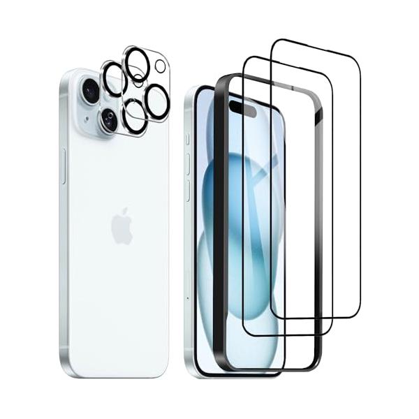 DZHFU iPhone 15 plus 強化ガラスフィルム 6.7インチ 高透過率 全面保護フィルム 硬度9H 滑らかなタッチ操作 指紋付着防