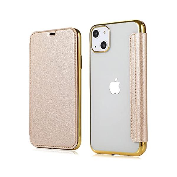 YUYIB i Phone13 ケース 6.1" 手帳型 背面 クリア 透明 高級なPUレザー+TPU 衝撃