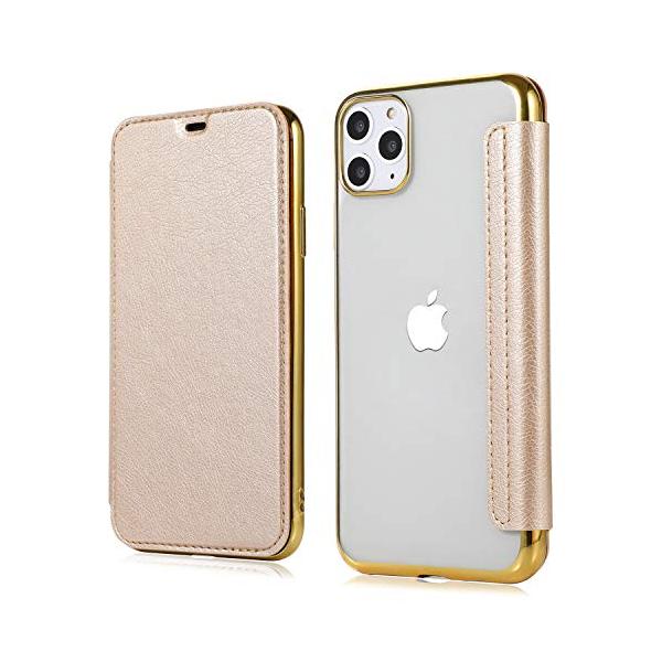 YUYIB i Phone 11 Pro Max 用 ケース 手帳型 クリア 背面 薄型 透明 高級なPUレ