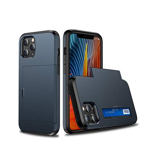 SUMartiPhone 14 Pro Max 用 ケース カード収納 スライド式 カードホルダー 耐衝撃 デュアルレイヤー ハイブリッド ウォレットケース ハード カバー
