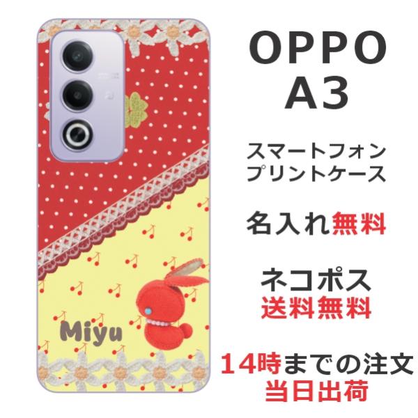OPPO A3 5G オッポ A3 5G らふら 名入れ スマホケース 赤ウサギ 白い鳥