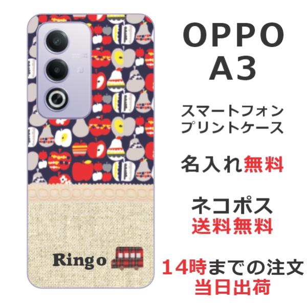 OPPO A3 5G オッポ A3 5G らふら 名入れ スマホケース 北欧デザイン フルーツ ネイビー