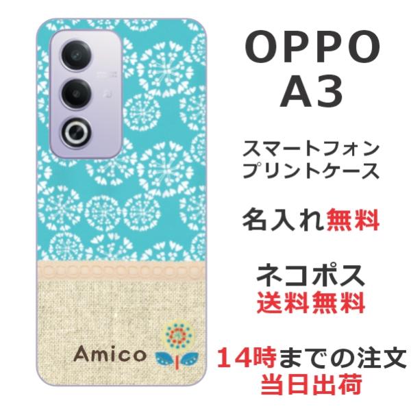 OPPO A3 5G オッポ A3 5G らふら 名入れ スマホケース 北欧デザイン フラワー ブルー