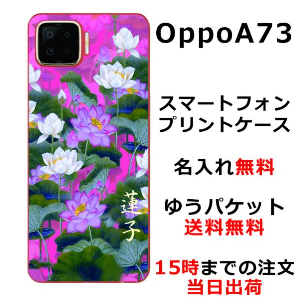 Oppo A73 ケース オッポA73 カバー らふら 名入れ 和柄 蓮花ピンク
