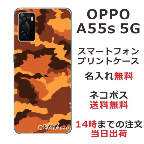 OPPO A55s 5G A102OP オッポ A55S らふら 名入れ スマホケース 迷彩 ブラウン