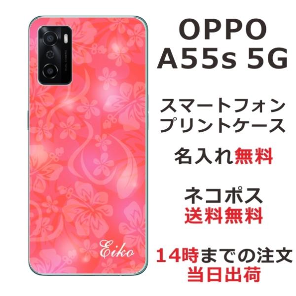 OPPO A55s 5G A102OP オッポ A55S らふら 名入れ スマホケース ハイビスカスピンク