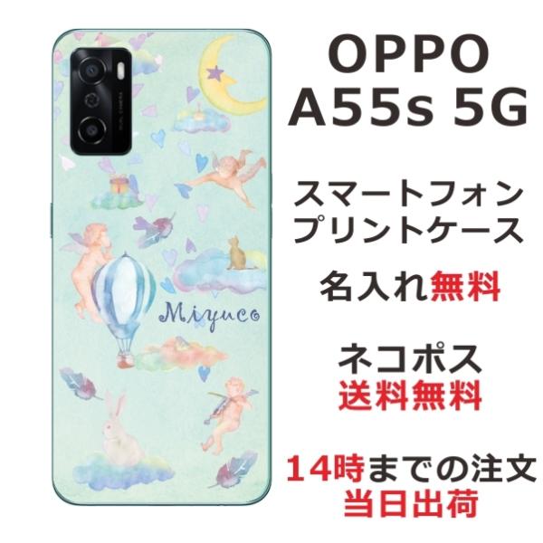 OPPO A55s 5G A102OP オッポ A55S らふら 名入れ スマホケース エンジェルバルーン