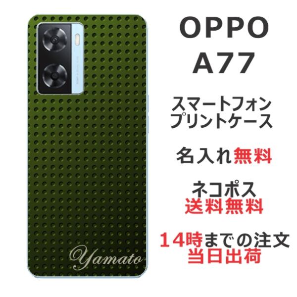 OPPO A77 ケース オッポA77 カバー らふら 名入れ メタル グリーン2