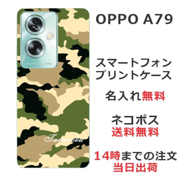 OPPO A79 オッポ A79 らふら 名入れ スマホケース 迷彩 グリーン