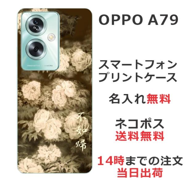 OPPO A79 オッポ A79 らふら 名入れ スマホケース 和柄 セピア牡丹