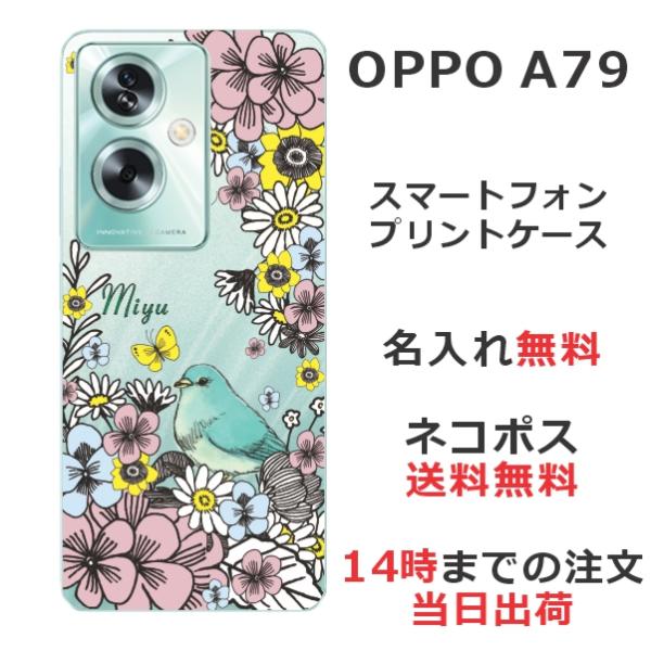OPPO A79 オッポ A79 らふら 名入れ スマホケース フラワーバード