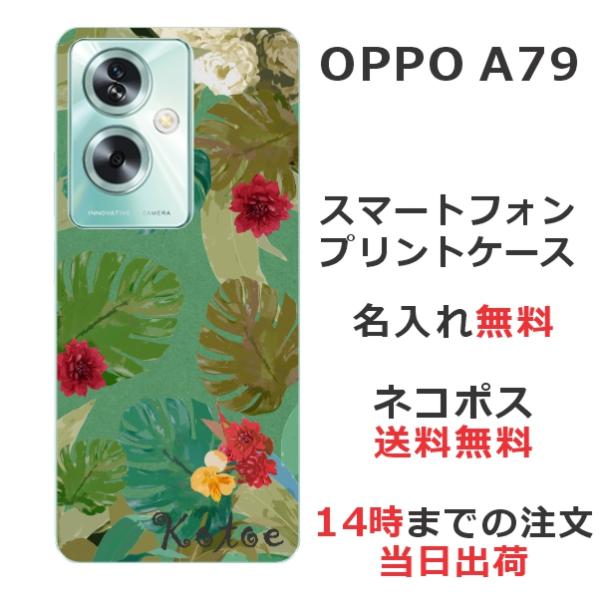 OPPO A79 オッポ A79 らふら 名入れ スマホケース ハワイアン ハワイアングリーン