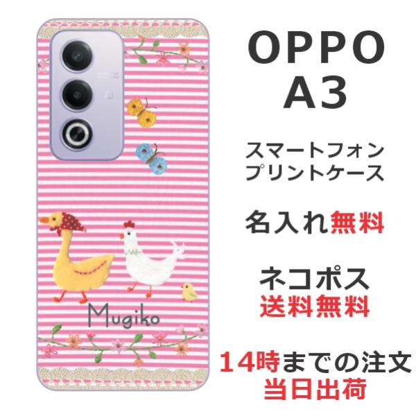 OPPO A3 5G オッポ A3 5G らふら 名入れ スマホケース あひる にわとり 行進