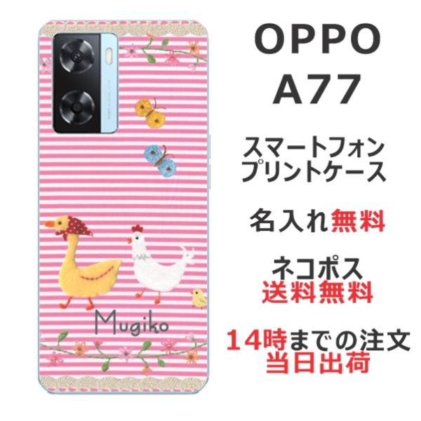 OPPO A77 ケース オッポA77 カバー らふら 名入れ あひる にわとり 行進