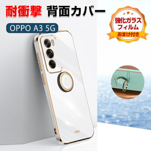 - オッポ OPPO A3 5G CPH2639 ケース 耐衝撃 傷やほこりから守る CASE 衝撃に強いTPU素材 メッキ仕上げ マグネット留め メタルリングホルダー 耐衝撃 衝撃防止 便利 実用 人気 簡単着脱 持ちやすい スマホ 保護 背面カバー ケース 強化ガラスフィルム おまけ付き