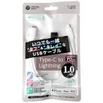 - Type-C to Lightningケーブル Lightning搭載のiPhone・iPadなどとUSB Type-C搭載のパソコンを接続し、充電・データ転送が可能。 また、USB Type-C搭載のAC充電器に接続し、家庭用コンセントから充電ができます。・ ケーブル被覆部に「シリコーン素材」を採用 「シリコーン素材」はやわらかく一か所に負担がかかりにくい為、断線に強く、折り曲げ痕がつきにくい。・ 石塚硝子製抗菌剤「イオンピュア」を採用した抗菌仕様 抗菌効果のある金属イオンを含んだ溶解性のガラス粉「イオンピュア」が、ケーブル被覆部・コネクタ樹脂部に練り込まれています。 SIAA(抗菌製品技術協議会)認証取得製品です。 SIAAマークは、ISO 22196法により評価された結果に基づき、抗菌製品技術協議会ガイドラインで品質管理・情報公開された製品に表示されています。 JP0123203A0001N・ 持ち運びに便利な「ケーブルバンド」が付属 移動時や収納時、まとめておけるからケーブルが邪魔にならない。仕様■ 充電・データ転送: 対応■ 電力供給 : 最大 20V/3A(60W) USB Power Delivery対応 ※ 別途USB Power Deliveryに対応している充電器が必要です。■ コネクター形状 : USB Type-Cオス、Lightningオス■ 対応機種 : Lightning搭載のiPhone、iPadなど■ カラー : ホワイト■ 保証期間 : お買い上げ日より1年 ※ 万が一、製造上の原因により不具合が発生した場合は、レシートなどをご提示いただいた上で同等の製品とお取り替え致します。 ※ 本製品の保証適用範囲は、日本国内のみとなります。