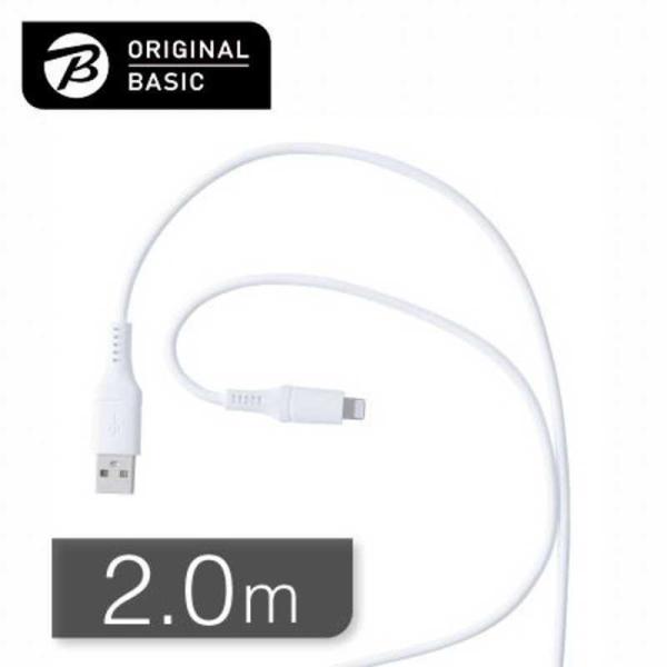 ORIGINALBASIC iPhone充電ケーブル Type-A to ライトニングケーブル 2m MFI認証 シリコーン素材 やわらかい 抗菌仕様 SIAA認証 ホワイト OB-UCS2AL200-W