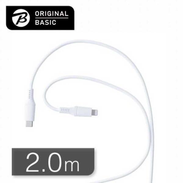 ORIGINALBASIC iPhone充電ケーブル Type-C to ライトニングケーブル 2m MFI認証 シリコーン素材 やわらかい 抗菌仕様 SIAA認証 ホワイト OB-UCS2CL200-W