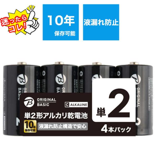 ORIGINALBASIC 単2乾電池 シュリンクパック [アルカリ/4本]【10年保存可能】 LR14BKOBS4P