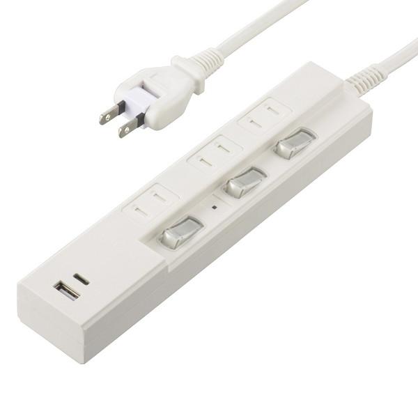 ORIGINAL BASIC USB付き節電タップ Type-Cポート付 白 OBB-TPK331AC-W [3.0m /3個口 /スイッチ付き(個別) /2ポート] [振込不可]
