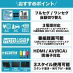 - 商品説明好きな場所でテレビや動画を楽しめる録画機能付き15.6インチポータブルテレビ様々な用途に対応する多彩な入力/電源・キッチンでレシピ動画を再生・屋外で動画を楽しむ・サブモニターとして使う・車内でも大画面を楽しめるドライブや屋外でも使える3電源対応充電式/CAR/AC壁掛けができるフックスタイルどこでも使える自立スタンド付き場所に合わせて選べる2WAYスタイル地デジの番組を録画再生できるUSBメモリやハードディスクを接続してテレビ番組の録画ができます。また、動画・音声・画像ファイルの再生もできます。※USBメモリとハードディスクは別売です。スペックサイズ外形寸法:約W380×D26×H231mmパッケージサイズ:420×103×355mm重量本体質量:約1.0kg仕様電源:ACアダプタ入力AC100V-240V50/60Hz出力DC12V1.5Aカーアダプタ入力DC12V出力DC12V1.5Aバッテリー2000mAh7.4V満充電時間約3.5〜4時間連続使用時間約2時間待機消費電力:1W以下消費電力:約18Wスピーカー:2W+2W(ステレオ)入力端子:アンテナ、DC電源、USB×2(番組録画・メディア再生)、AVイン、HDMI、miniB-CASカードスロット出力端子:AVアウト、イヤホン(ステレオミニピン3.5Φ)対応フォーマット:音声対応ファイルMP3/WMA/AAC動画対応ファイルMPEG4/MKV/MOV/VOB/RM画像対応ファイルJPEG/JPG/BMP/PMGテキスト対応ファイルTXT※すべての再生の保証はしておりません。受信周波数:地上デジタルUHF(13-62ch)フルセグ放送/ワンセグ放送/自動切替※インターネット回線を利用した地デジ受信環境には非対応。液晶パネル:タイプTFT-LCDコントラスト比500:1(Typ.)TMサイズ15.6インチ輝度220cd/平方メートルフレームレート60Hz応答速度8(Typ.)(Tr+Td)msアスペクト比16:9視野角40/40/15/30(min.)(CR≧10)解像度1366×768画素録画用ハードディスク容量:地デジ録画用ポート〜500GBのメモリーを推奨※2TBまで動作確認しとりますが表示に数十秒、時間を要します。※大容量になるほどリストの表示は遅くなります。データ再生用メディア容量:データ再生用ポート〜32GBまでのメモリーを推奨許容温度範囲:0〜40℃リモコン到達距離:3m以内(本体リモコン受光部正面から)付属品ACアダプタ、カーアダプタ、リモコン(動作テスト用電池含む)、AVケーブル、車載用バック、簡易アンテナ、イヤホン、miniB-CASカード、取扱説明書兼保証書保証期間:1年間【送料について】北海道、沖縄、離島は送料を頂きます。