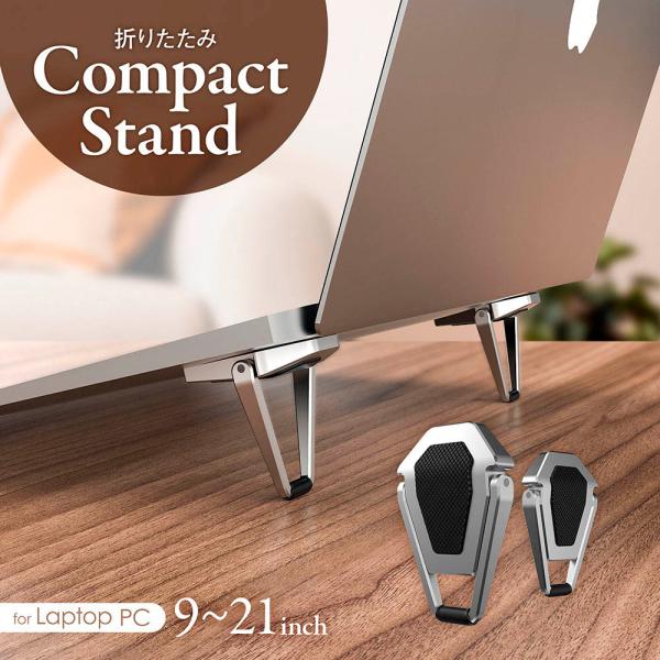 ノートパソコンスタンド 貼付タイプ 1セット(2個) 折りたたみ 9インチ〜21インチ対応 コンパクトメタルスタンド(在庫処分)