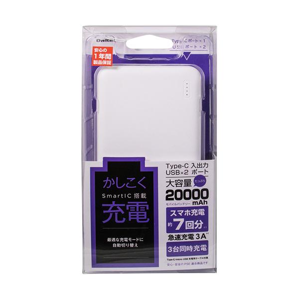 オウルテック 20000mAh リチウムポリマーモバイルバッテリー ホワイト OWL−LPB20001−WH 1個