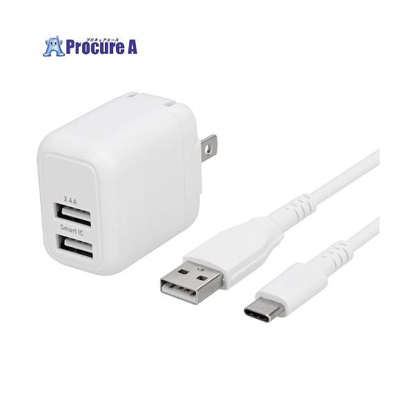 Owltech 最大12W USB Type-A2ポートAC充電器+USB Type-A to USB Type-Cケーブルセット ■▼450-0153 OWL-AC12WBAC12-WH 1個