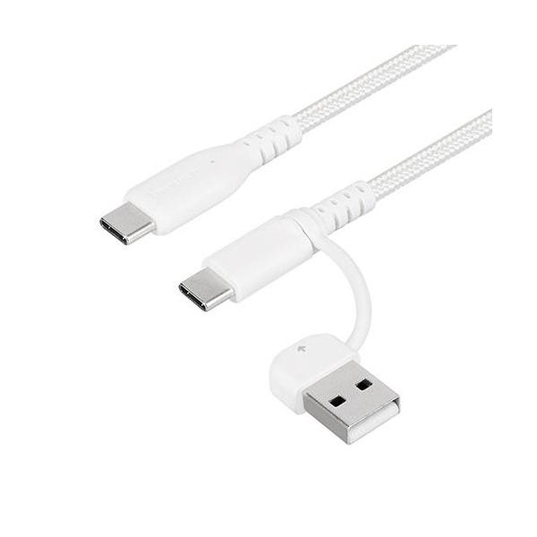 オウルテック(OWLTECH) OWL-CBA5ACC15-WH ホワイト 断線に強い 最大PD60W充電/データ転送 USB Type-A/USB Type-C to USB Type-C 2in1ケーブル 1.5m