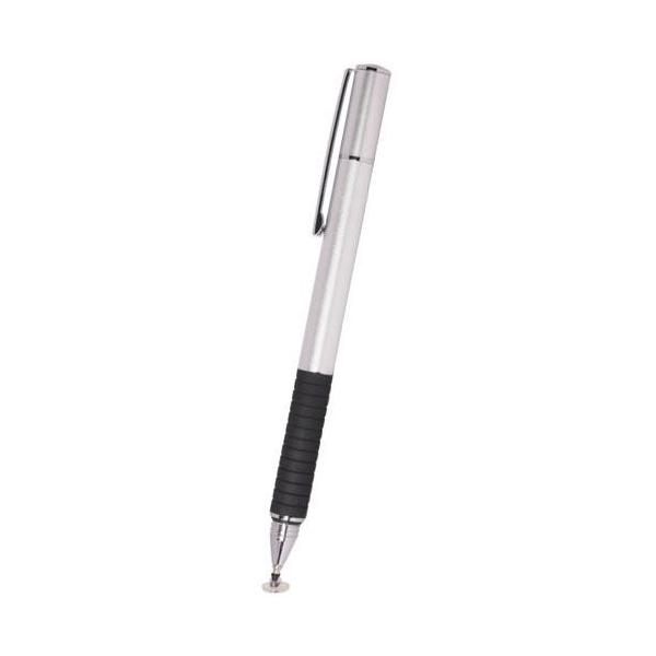 - 〔タッチペン:静電式〕透明なディスク型のペン先と導電繊維のペン先を一つに 用途に合わせてペン先を選べるタッチペン。■ 透明なディスク型ペン先でタッチの高い精度と視認性を実現ペン先が透明なディスク型のため静電式タッチパネルと面で接し、ペンの角度を変えても高い精度を維持します。またタッチ先の視認性が飛躍的に向上するため、手描きメモや、お絵描きアプリでの正確で繊細な作業に最適です。 ※ペン先のディスク部分は取り外さずに使用してください。■ 金属を繊維状に編み込んだ柔軟性の高いペン先金属を編み込んだ特殊な繊維は、従来のゴムやシリコン製のタッチペンと比べ柔軟性が高く、タッチ時の接触音を抑え、軽いタッチでもしっかり反応するため、機敏な動作が必要なパズルゲームやフリック操作などのタッチ操作にも最適です。また、繊維状にすることで高い耐久性があり長く使えるのも特長です。■ ラバーグリップでしっかりグリップ手袋着用時や乾燥などでペンが滑ってしまう場合など、ラバーグリップを採用することでタッチ時の安定性を高めています。■ シーンを選ばず使えるデザインペン本体にアルミのサンドブラスト加工を施し、高級感のあるボールペンのようなデザインでカジュアルな服装だけでなく、クリップ付きでフォーマルなスーツの胸ポケットに挿したり、ビジネスシーンでもお使いいただけます。■ ネイルをしていても快適なタッチ&フリック動作ネイルで指先が使いづらかったり、手袋をしていて文字入力やゲームのフリック操作がしにくい場合でも、ネイルのまま、手袋のままで快適にスマホ操作ができるタッチペンです。【対応機種】iPhone、iPad、スマートフォン、タブレット各種【対応タッチパネル方式】静電容量方式 ※筆圧機能は対応しておりません。【材質】ペン本体:鉄、銅、アルミニウム、ペン先:PC、銅、シリコン【サイズ (本体)】L 140mm (長さ) × φ 9.5mm (直径)【重量 (本体)】21g【保証期間】初期不良のみ対応