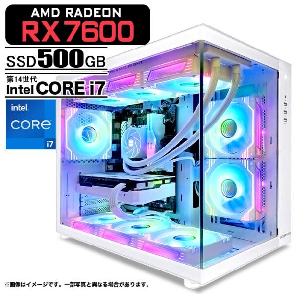ゲーミングPC 海景房 GMQ360 ホワイト AMD Radeon RX7600 第14世代 Intel Corei7 14700F Win11 SSD500GB メモリ16GB CPU水冷ファン eスポーツ PASOUL 極