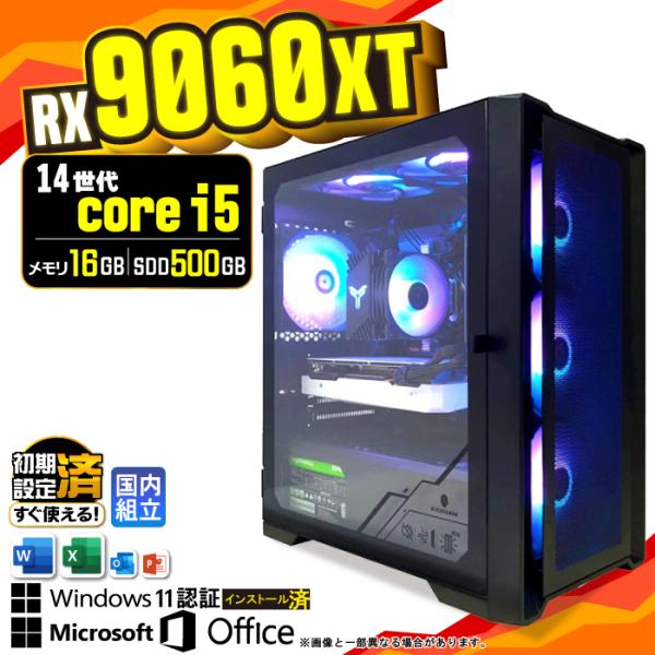 Microsoft Office ゲーミング PC 新品 パソコン AMD Radeon RX9060XT 第14世代 Corei5 メモリ16GB SSD 500GB Windows11 デスクトップ 安い 本体 ゲーム