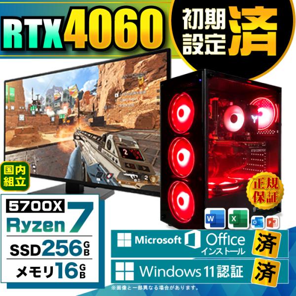 Microsoft Office ディスプレイ モニター 付き デスクトップPC 新品 パソコン RTX4060 AMD Ryzen7 5700X 16GB SSD 256GB Windows11 ゲーミング 安い セット