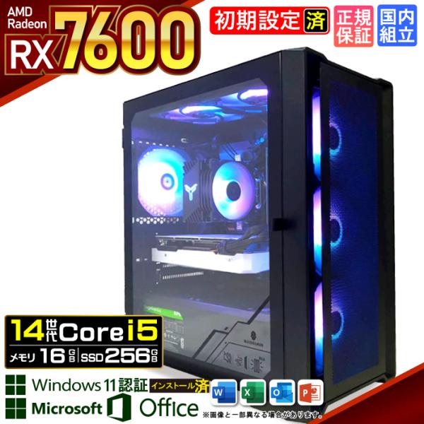 Microsoft Office 付き 当日発送 ゲーミングPC 新品 パソコン Radeon RX7600 第14世代 Corei5 メモリ16GB SSD 256GB Windows11 ゲーミング 安い セット ゲーム