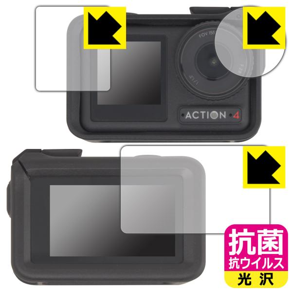 DJI Osmo Action 4 [保護フレーム装着あり] 対応 抗菌 抗ウイルス[光沢] 保護 フィルム [メイン用/サブ用/レンズ部用] 日本製