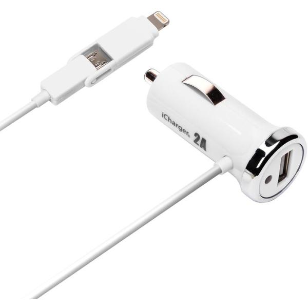 Lightning & micro USB ツインコネクタ DC充電器 2.1A 1.0m ホワイト PGA PG-TUD21A02WH