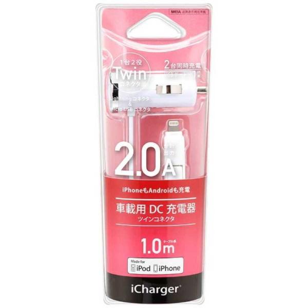 PGA タブレット/スマートフォン対応[micro USB+Lightning]DC充電器 PG-TUD21A02WH
